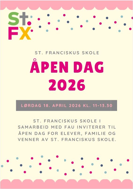 Andre opptak for 1. – 10. trinn er 1. april. Du finner søknadsskjema her: Søk skoleplass – St. Franciskus skole