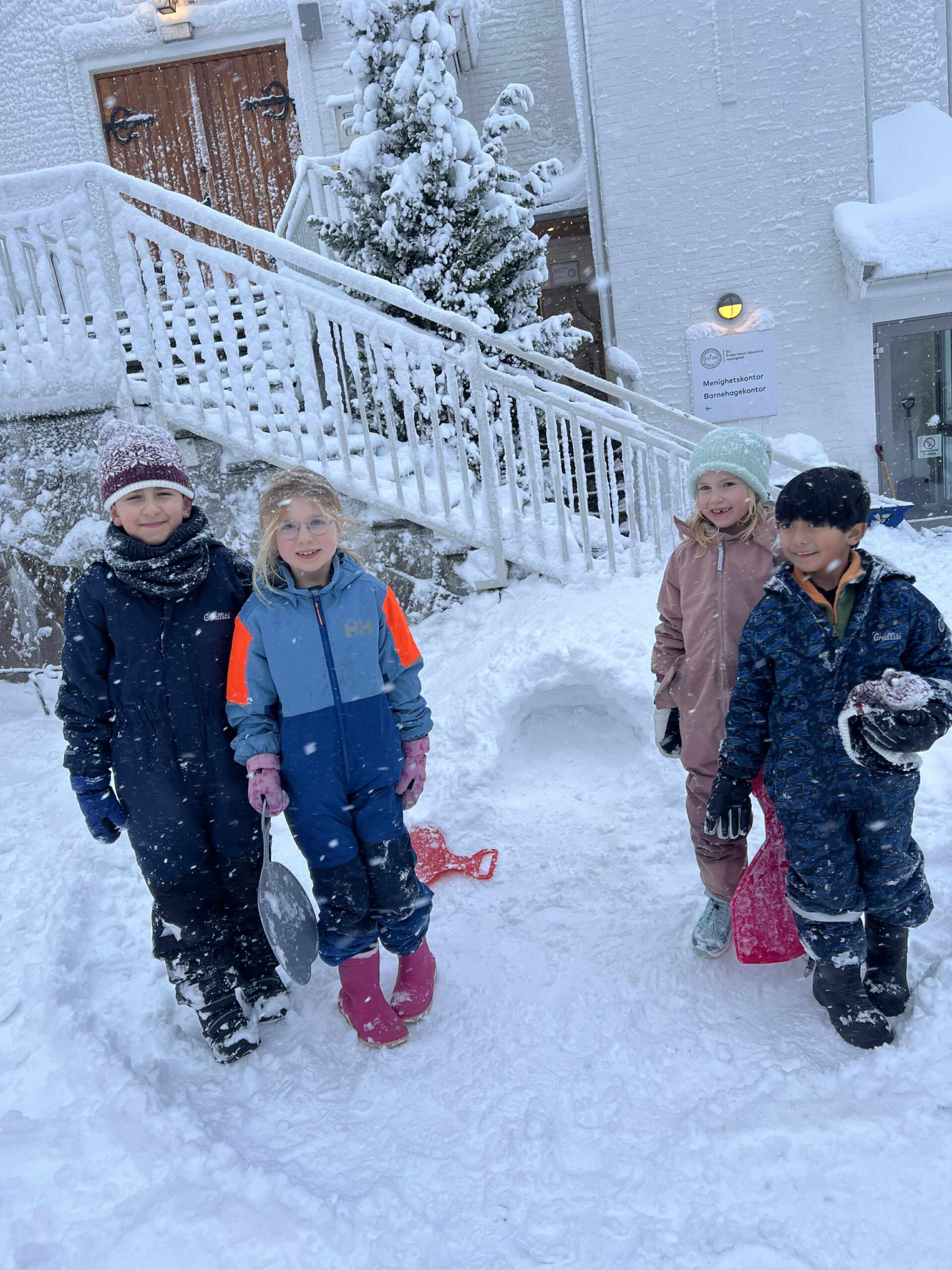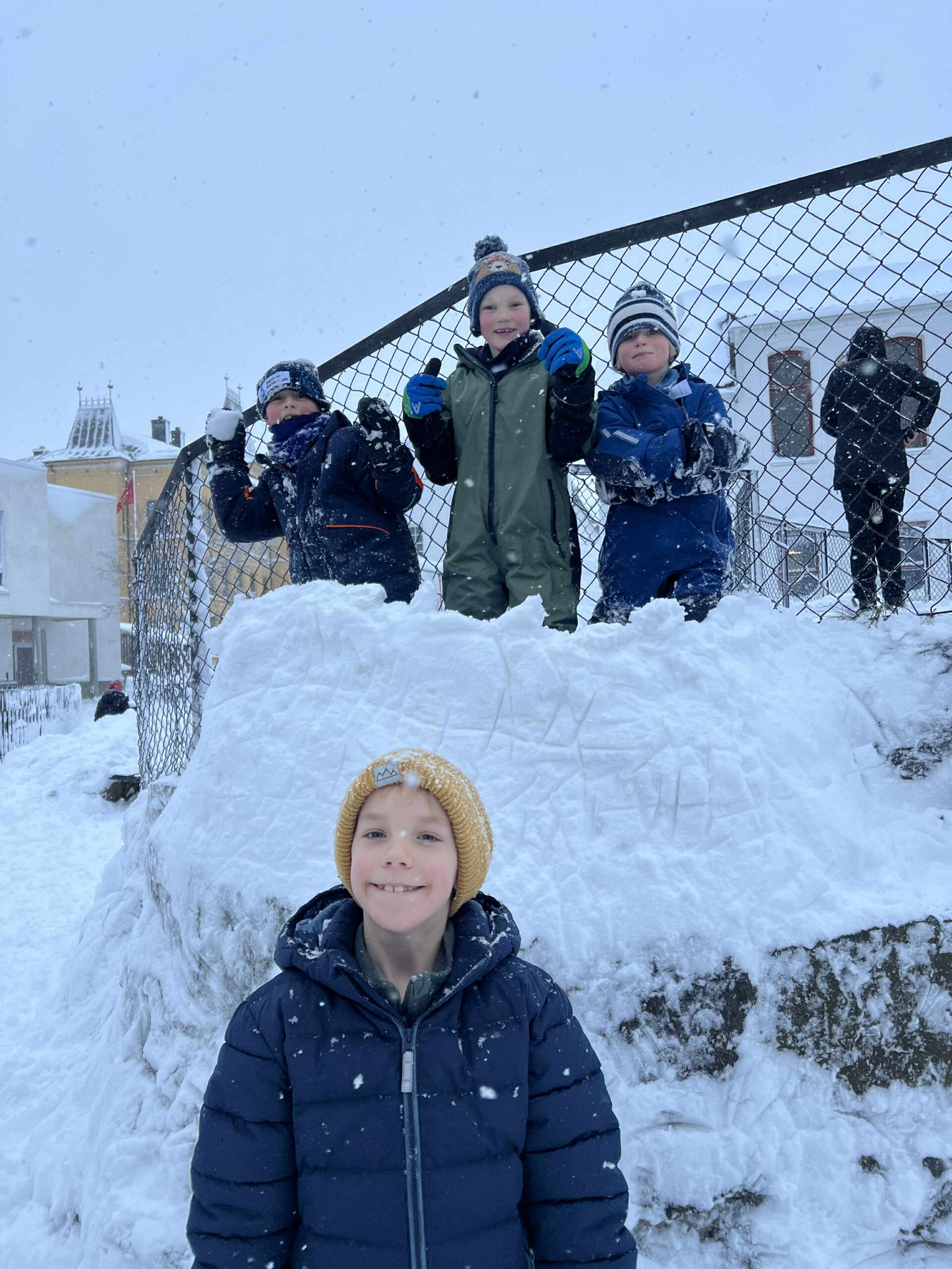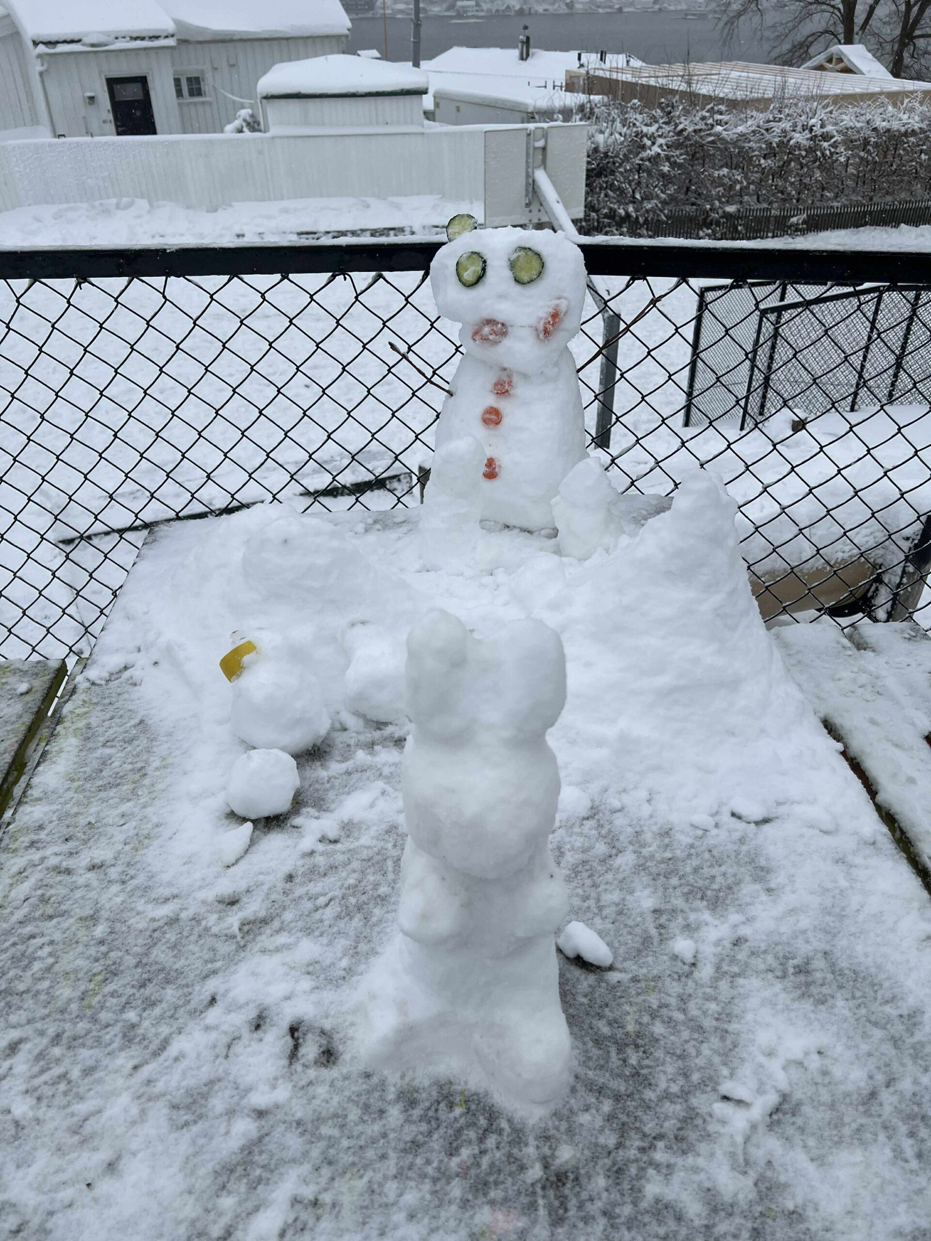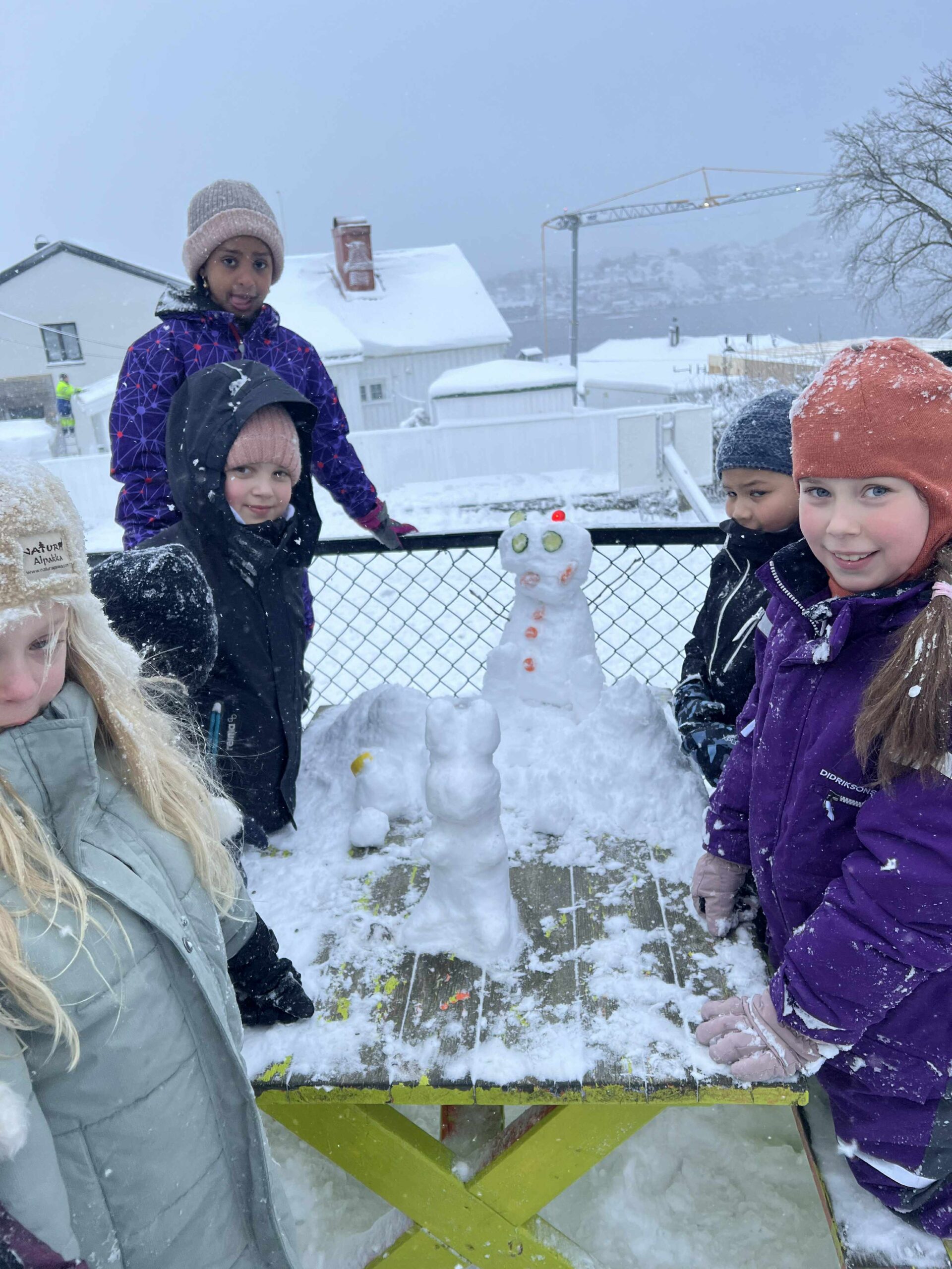 Gøy å være snøkunstner Da snøen «endelig» kom i begynnelsen av januar, var det mange glade barn på skolen vår. Det ble arrangert en konkurranse i friminuttene en tirsdag om å lage de flotteste snøskulpturene. Det ble mange fine bidrag. Kos deg med bildene. Vi håper på flere gode dager med snøleker fremover.
