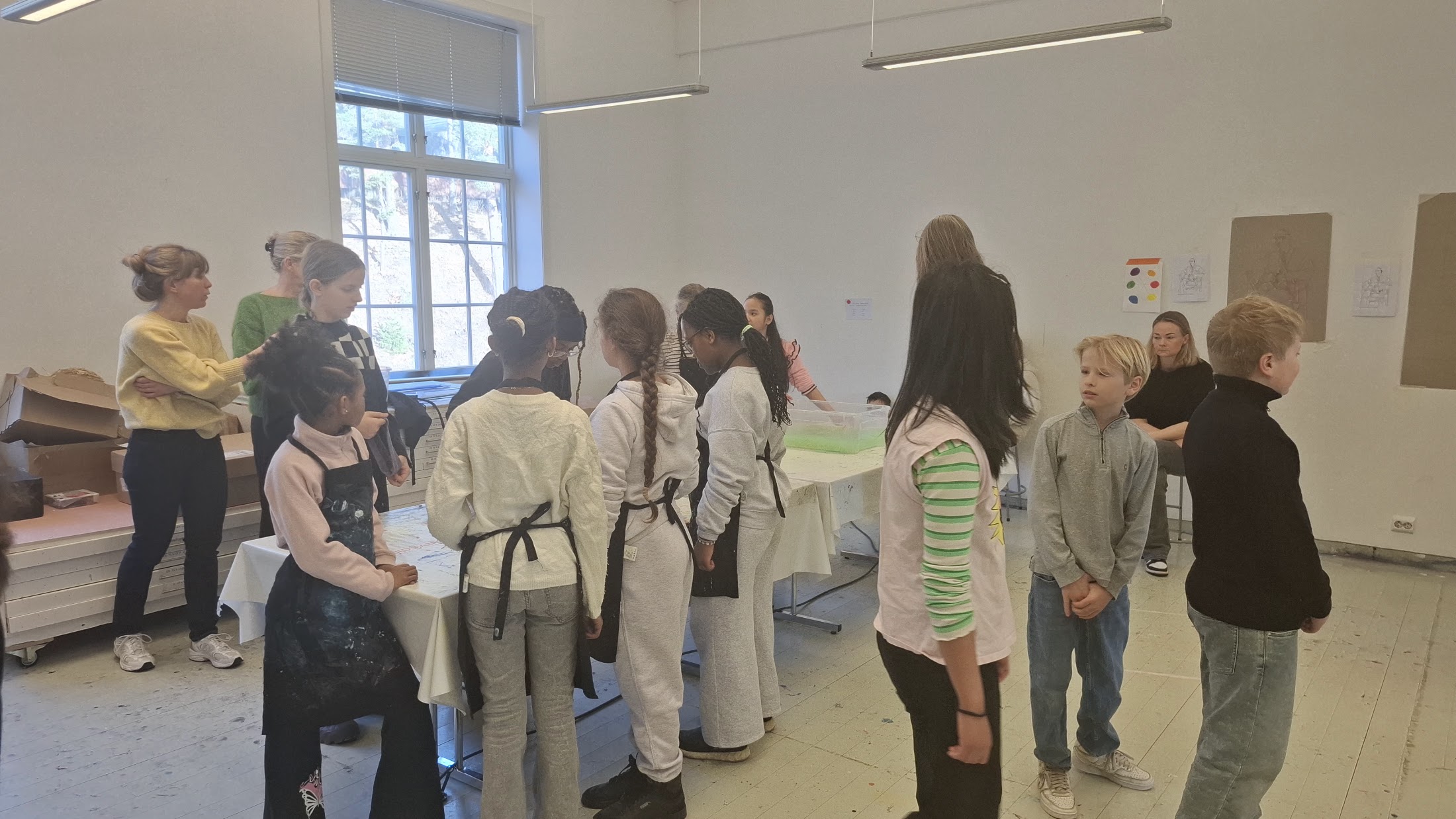 Mandag 9.mars var klassene på mellomtrinnet invitert opp til Bonuldsfabriken kunsthall. Dette var i regi av den kulturelle skolesekken. Først fikk barna en omvisning i utstillingen "Det bestandige" som er laget av kunstneren Gunvor Nervold Antonsen. Hun bruker mye naturmaterialer av tre og farger som er laget av naturelle ingredienser. Store og fargerike bilder og skulpturer møtte elevene. Etter dette fikk barna selv lage fargerik kunst av papir i et eget rom. Dette var gøy og lærerikt. Takk til de gode formidlerne på Bomuldsfabriken.